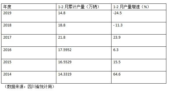 持续下滑!1-2月四川省汽车产量跌落至2014年同期水平