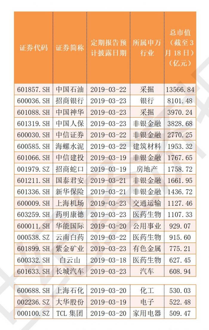 市值方面,有万亿市值巨无霸中国石油,以及招商银行、中国神华、中国人保、中信证券等11家数千亿市值上市公司本周披露年报。