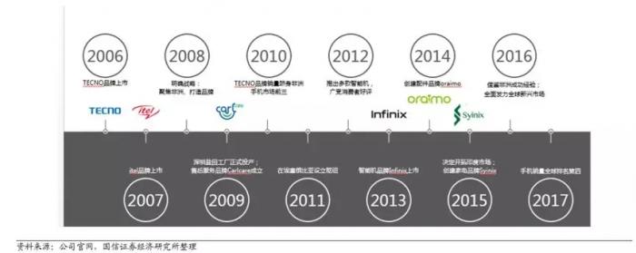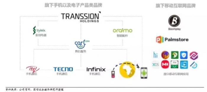 国信证券认为,多品牌战略是传音控股获得高份额的一个独特因素。目前,传音控股旗下拥有三个手机品牌TECNO、itel及Infinix,还包括售后服务品牌Carlcare,智能配件品牌oraimo以及家用电器品牌Syinix。