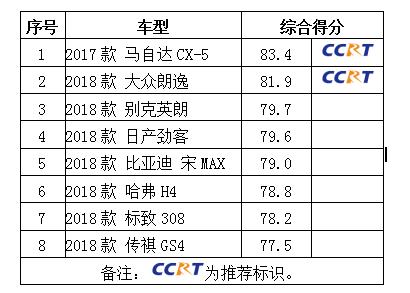 3月18日,中国汽车技术研究中心在天津公布了中国汽车消费者研究及测试中心(以下简称CCRT)2019年度第一批车型评价结果。八款车型参与测评,其中,2017款马自达CX-5与2018款大众朗逸成为2019年度第一批CCRT推荐车型。