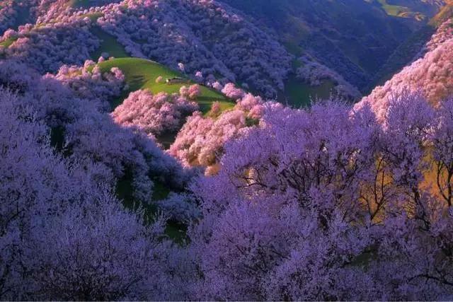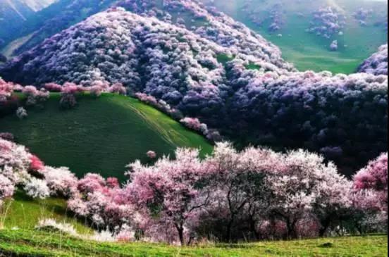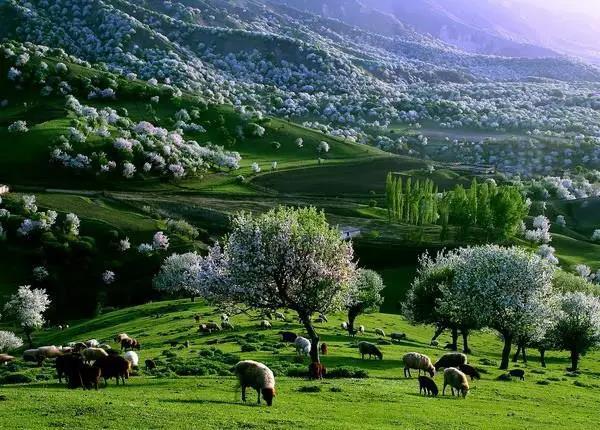 新疆伊犁杏花沟,可以说是新疆最名声在外的杏花观赏地了。春天初绿的山腰沟谷之间,野杏花竞相开放,一身雪白或粉红,弥漫着明朗而新鲜的气息,几公里之外,都能闻到清新的杏花香味。