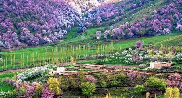每年4月这里的杏花、樱桃、李花、苹果花等逐次开放,加上布满整个山坡的各色野花和青葱的山坡,如铺满五颜六色的花毯。让你不禁会举起手中的相机,将此人间美景珍藏。