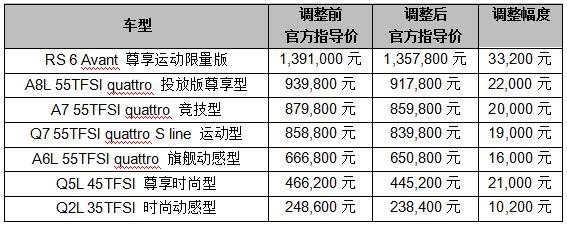 3月19日,一汽-大众奥迪宣布,为响应增值税税率调整,即日起下调全系在售车型官方指导价,最大降幅达5.5万元。奥迪成为继奔驰、宝马、捷豹路虎、沃尔沃、林肯之后第六家宣布下调指导价的车型。