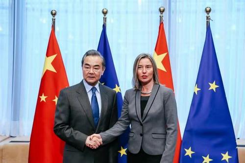 当地时间3月18日,国务委员兼外长王毅在布鲁塞尔同欧盟外交与安全政策高级代表莫盖里尼共同主持第九轮中欧高级别战略对话。