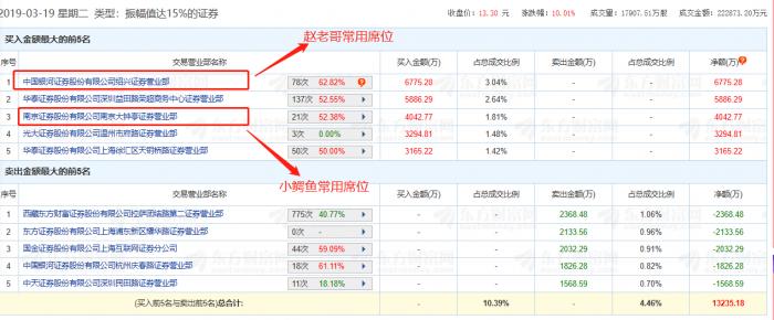 以3月19日龙虎榜数据来看,买方前五大席位中,就有“赵老哥”常用席位——中国银河证券股份有限公司绍兴证券营业部,以及“小鳄鱼”常用席位——南京证券股份有限公司南京大钟亭证券营业部。