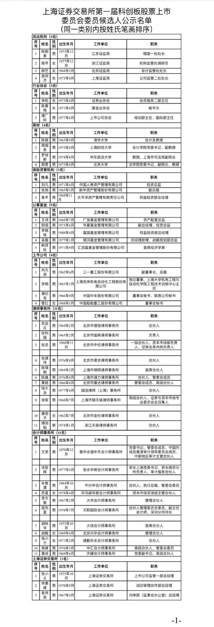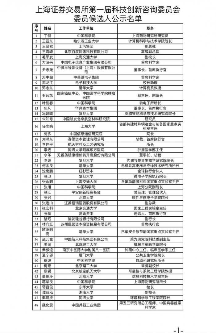 3月21日晚,上交所公示第一届科创板股票上市委员会、科技创新咨询委员会委员候选人名单。