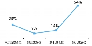 科创板投资者多数都是中高风险偏好类型的,从仓位来看,54%的投资者仓位超过九成。
