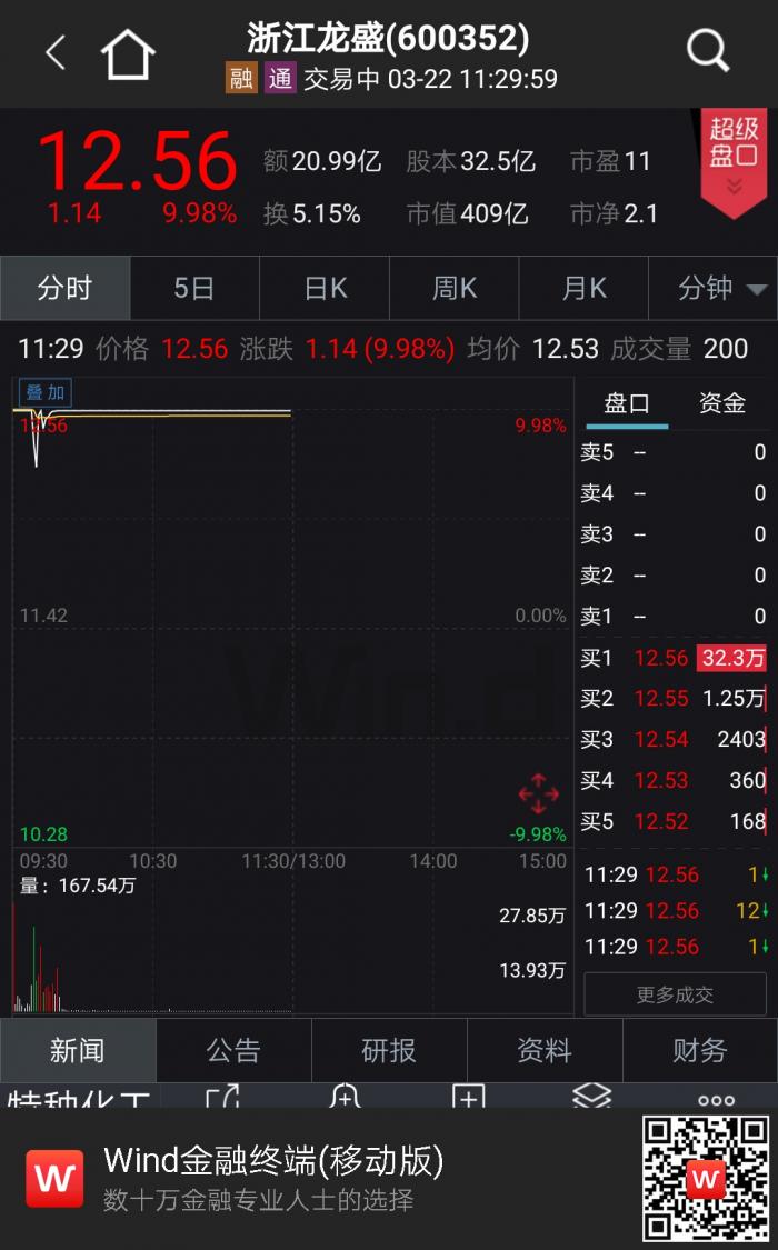 应声涨停的首先是浙江龙盛(600352.SH)。