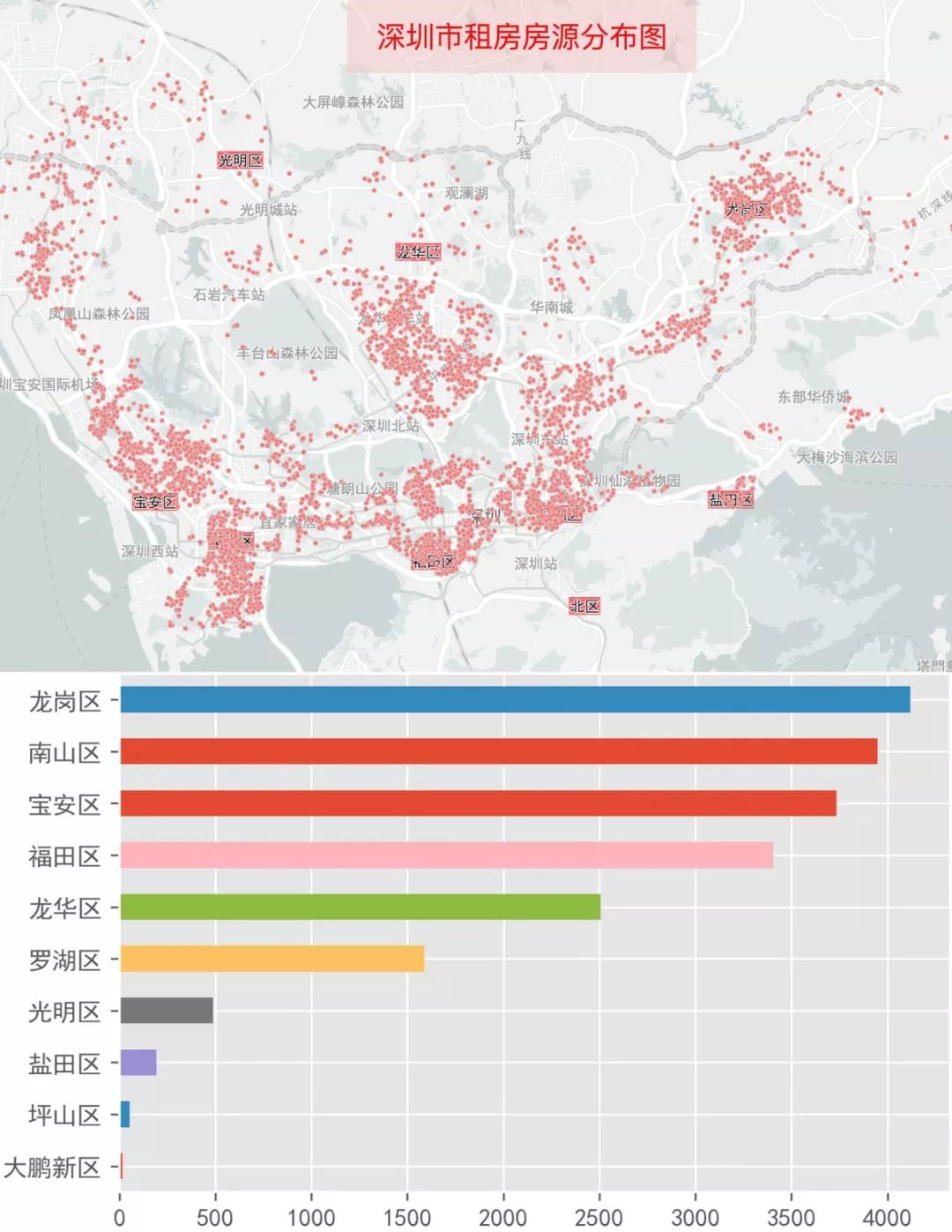 租房分布,也就是租房房源都在城市的哪个区域更多。