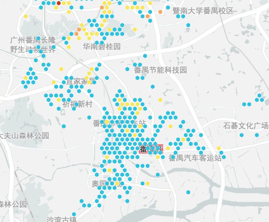 广州房源在四个城市中是最多的,共有39457条,主要集中在白云、天河、越秀、荔湾,以及海珠和番禺。其中白云、天河和番禺房源都超过6000条,选择丰富,不过看图也知道,3号线通勤压力巨大。