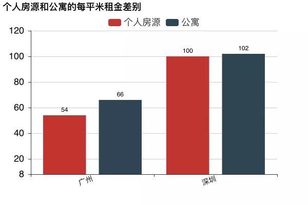 (注:由于链家网上对北京、上海的公寓标注很少,只占总房源数量的2%和4%,所以只展示广州和深圳的数据)