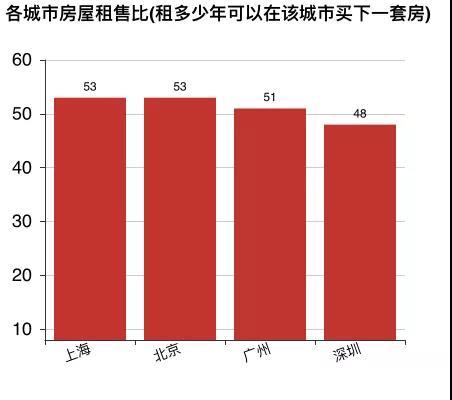 可见,按照北上广深当前的房价,50年左右的租金可以在城市买下一套房。其中深圳最低,只需要48年(也就意味着深圳的小伙伴们心头最痛)。