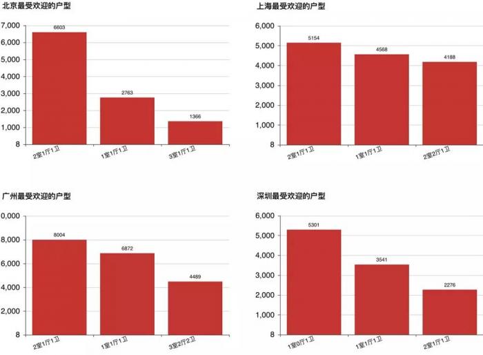 我们统计了北上广深各城市房源最多的3种户型。