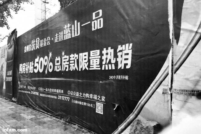 贵州扶贫基金会在小区内放置的“购房返补贴”大幅广告。(受访者供图/图)