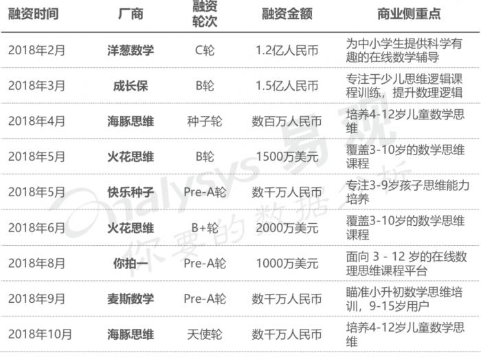 (2018年部分数理思维项目融资,来自 Analysys易观研究报告)