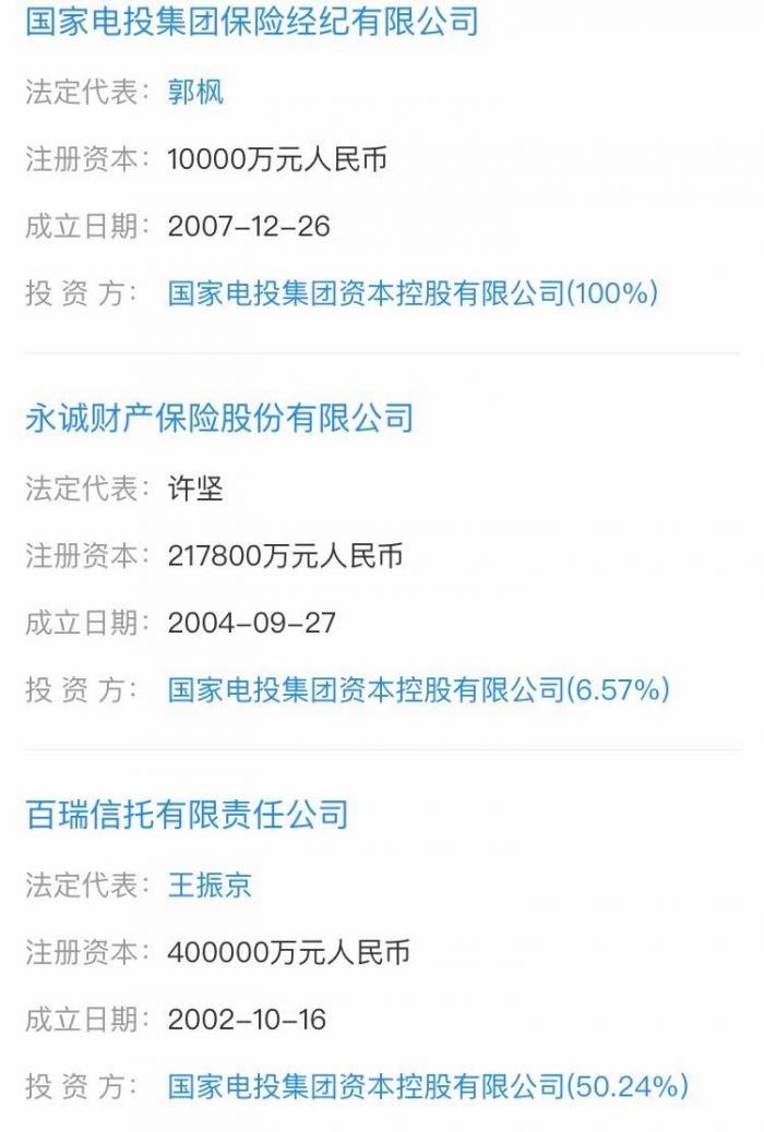 企查查数据显示,电投资本是国电投100%全资控股企业,实控人为国务院国资委。电投资本成立于2012年2月,注册资本为47.7亿元,法定代表人和董事长为王振京。
