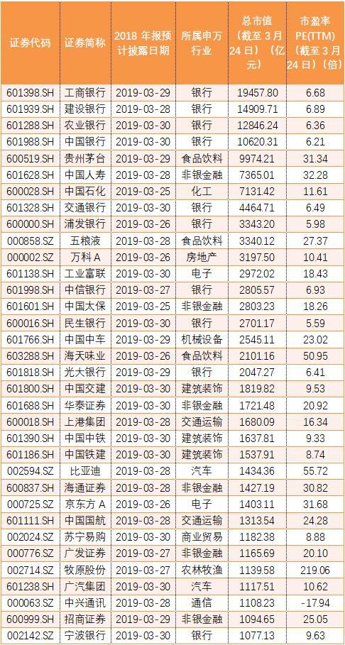 下周万亿市值四大行、贵州茅台、中兴通讯的年报都将亮相。