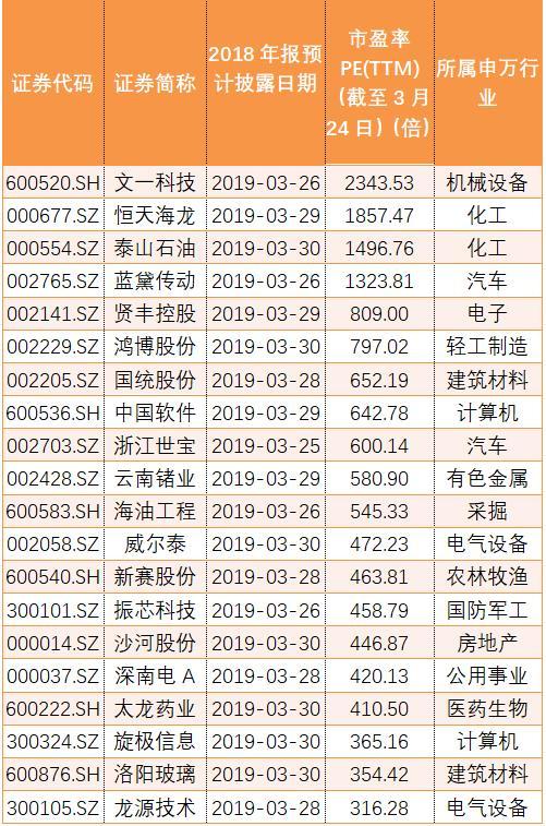 下周披露年报的上市公司中,截至3月24日市盈率最高的为文一科技,最新市盈率(TTM)达2343.53倍,属机械设备行业。