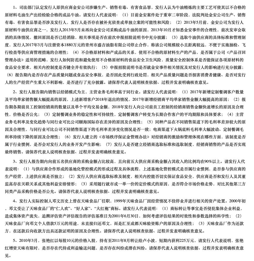 发审委会议对四川天味食品集团股份有限公司提出询问的主要问题如下: