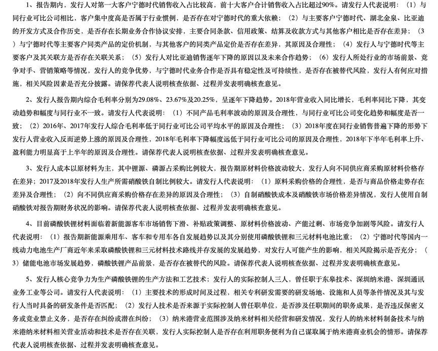发审委会议对深圳市德方纳米科技股份有限公司提出询问的主要问题如下: