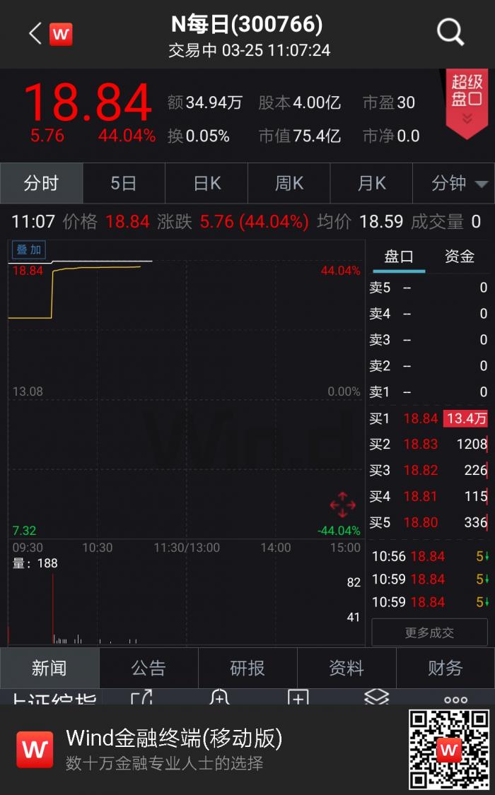 3月25日上午,每日互动(300766.SZ)在深交所上市敲锣,登陆创业板,发行价13.08元/股,开盘价15.7元/股,截至记者发稿,股价报收18.84元,上涨44.04%。