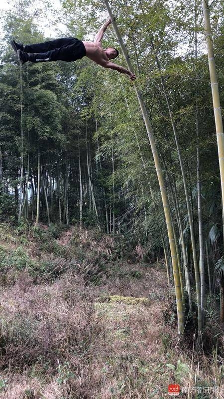 2016年春天开播之后,黄海木每天带着直播器材到山上的竹林,在离地五六米的树上造房子,再用竹桥将几个树屋连起来,不断地爬上爬下。房子逐渐形成规模,可是雷雨季节到来了。黄海木不敢拿生命开玩笑,在家中躲雨总是停播,又怕丢掉这份工作……无奈之际,他想到了直播锻炼。因为从小就参加过体育项目,20岁时受法国电影《暴力街区》的触动,研究了一年片中的炫酷动作,黄海木打算先在室内练起来,作为临时过渡,等雨季结束之后继续回山上搭房子。