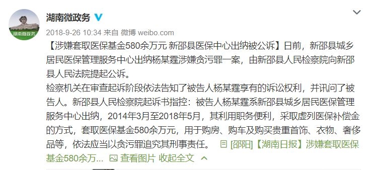 医保中心一番查询,发现了更为惊人的事:杨静霆从2014年9月至2018年5月28日期间,从医疗保险基金里共计挪用570多万元至石某的农业银行卡里。