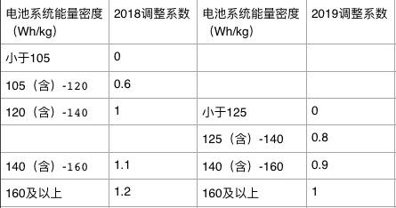 电池能量密度方面,要求有一定的放缓,系数有所降低,具体如下: