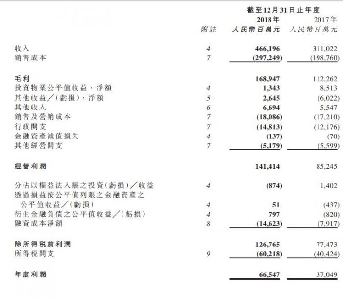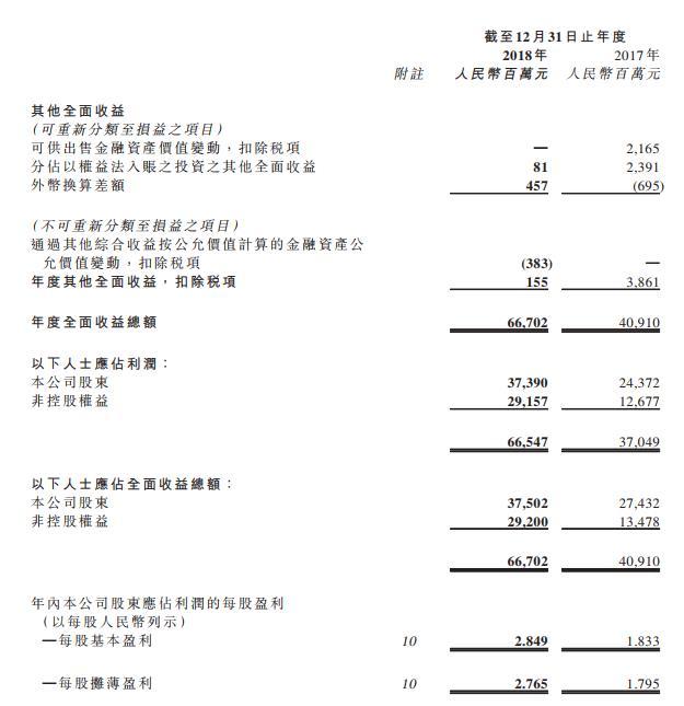 5.本年度股东应占利润增加至人民币373.9亿元,较2017年增长53.4%。