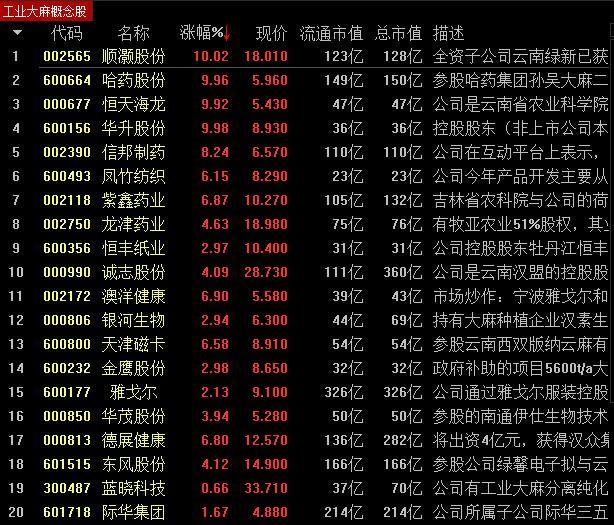 工业大麻概念在A股兴风作浪,相关上市公司的触角也在不断延申。