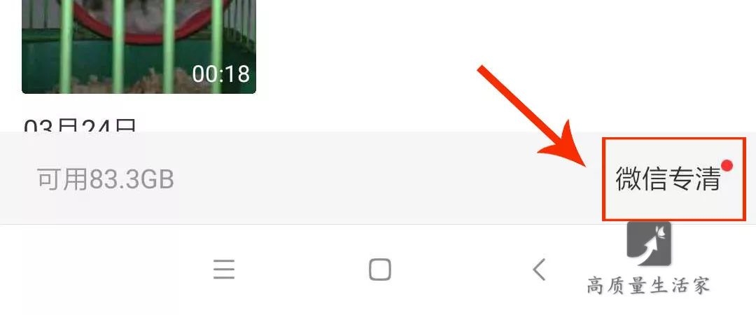 好多图片都是不需要的,这时我们点击右下角的【微信专清】。