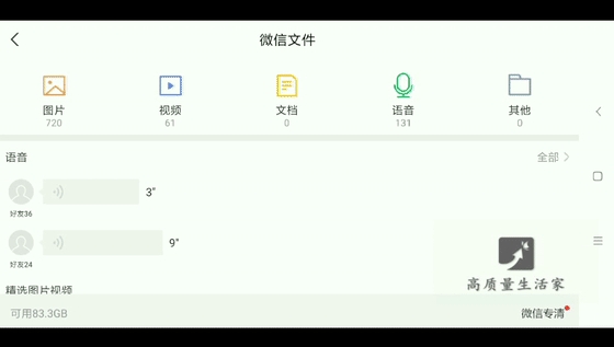再点击【微信视频】或【微信图片】,来选择删除,非常方便。