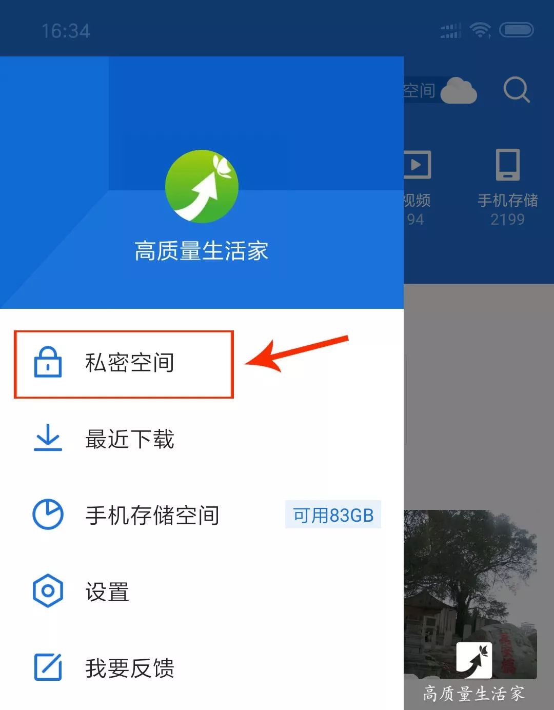 点击左上角用QQ或者微信登入腾讯文件,击私密空间然后设置一个密码。