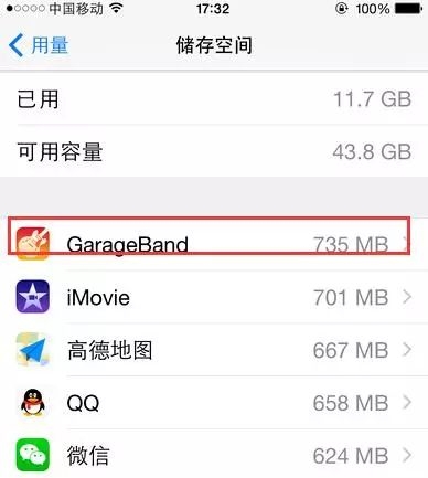 在手机主屏幕上依次打开设置→通用→用量→管理存储空间;
