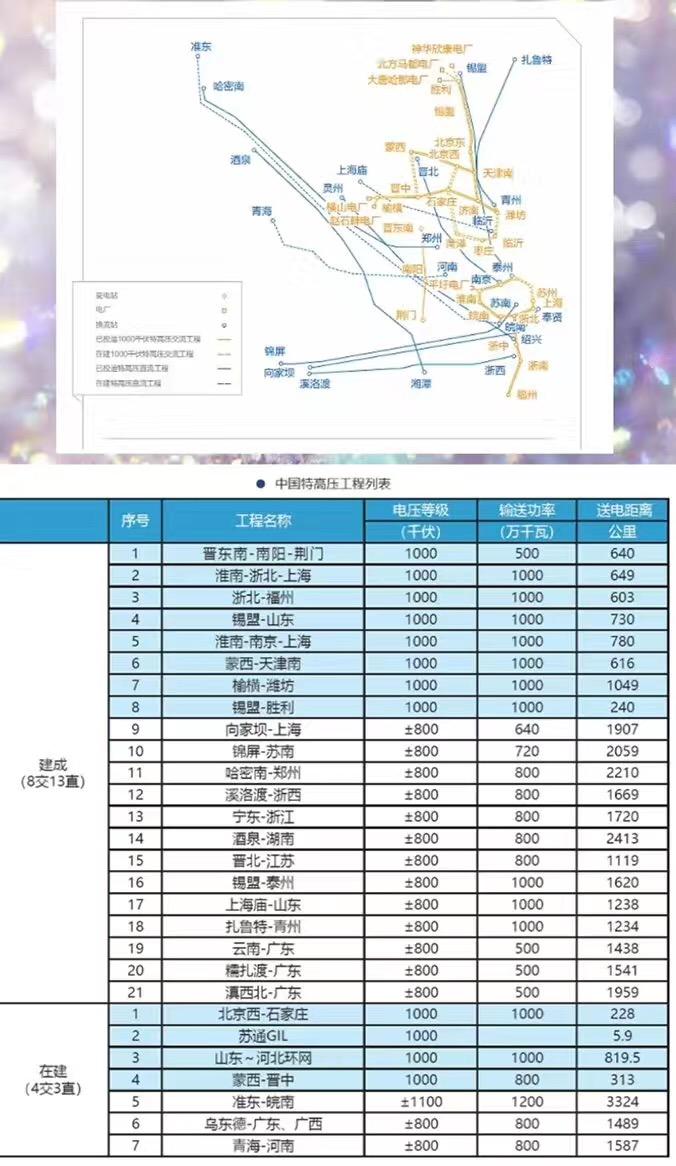 从2009年1月中国建成第一条特高压试验段——我国自主研发、设计和建设的具有自主知识产权的1000千伏交流输变电工程——晋东南-南阳-荆门特高压交流试验示范工程试运行至今,也才仅仅过去10年。截至2019年1月,中国已经建成“8交13直”21项特高压工程,线路长度2.7万公里;在建的是“4交3直”,线路长度0.78万公里,总里程为3.48万公里。