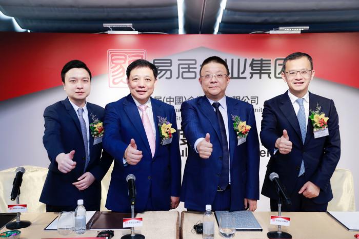 (从左至右依次为:易居企业集团首席财务官周亮、副主席黄灿浩、主席周忻、首席执行官丁祖昱)