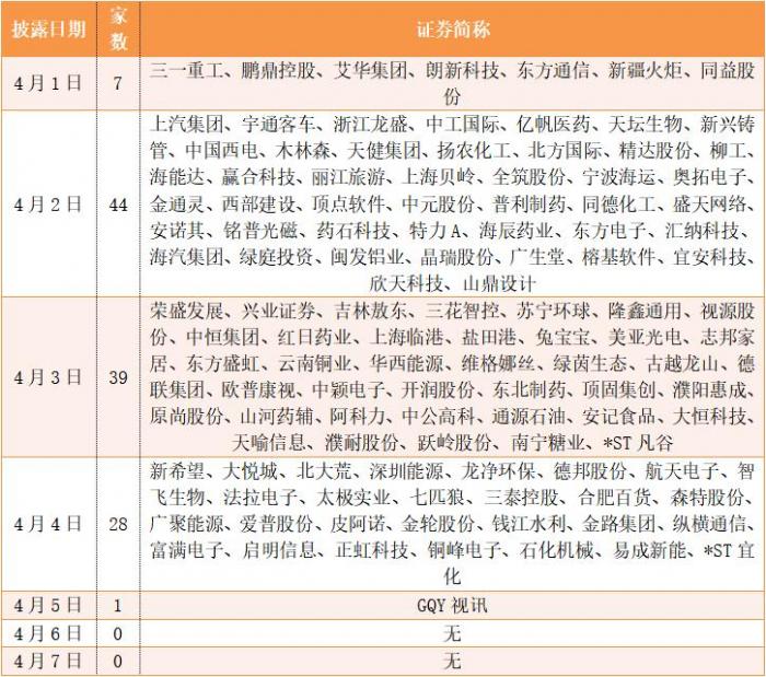 4月1日至7日这一周,沪深两市共有119家上市公司披露年报。