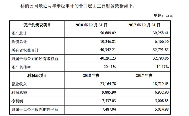 公告显示,巴九灵2017年总资产3.9亿元,2018年底总资产增长至5亿元,目前营业收入2.3亿元,2017-2018年的净利润分别为5008万元和7537万元。