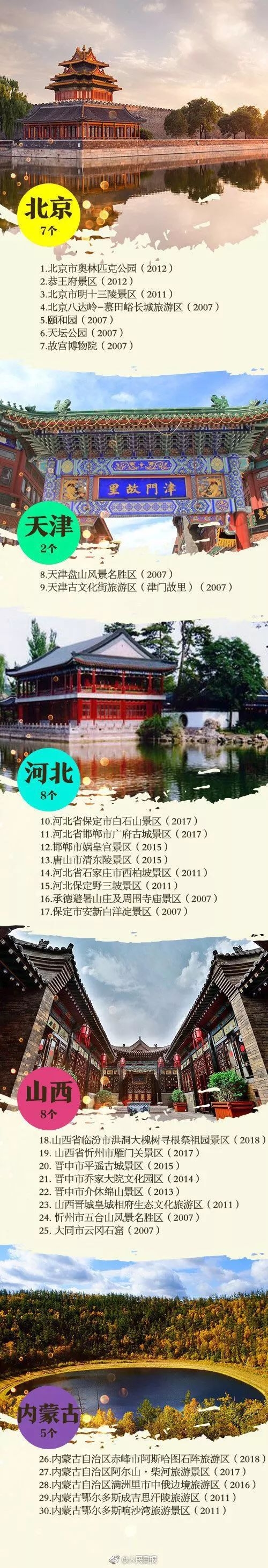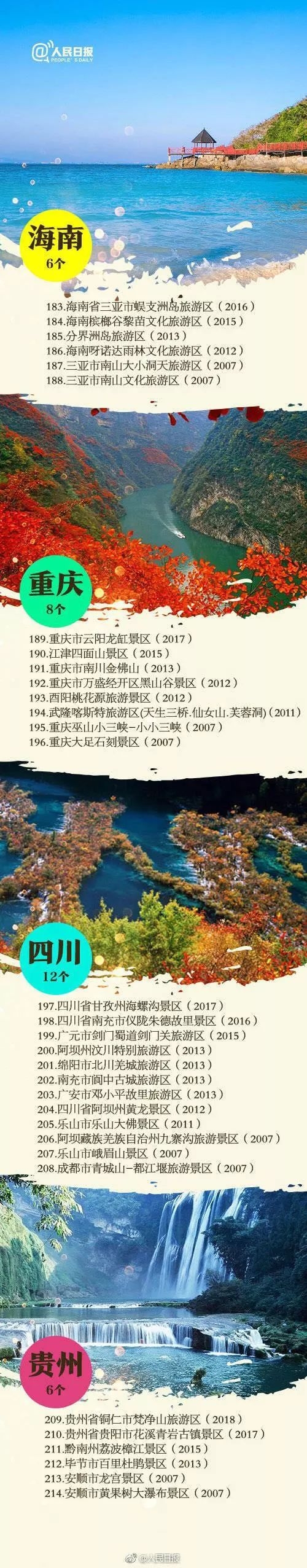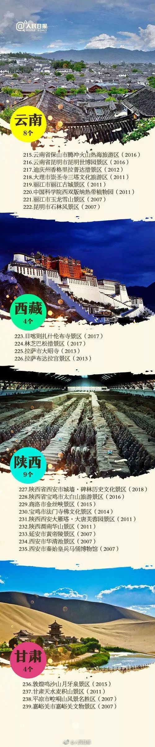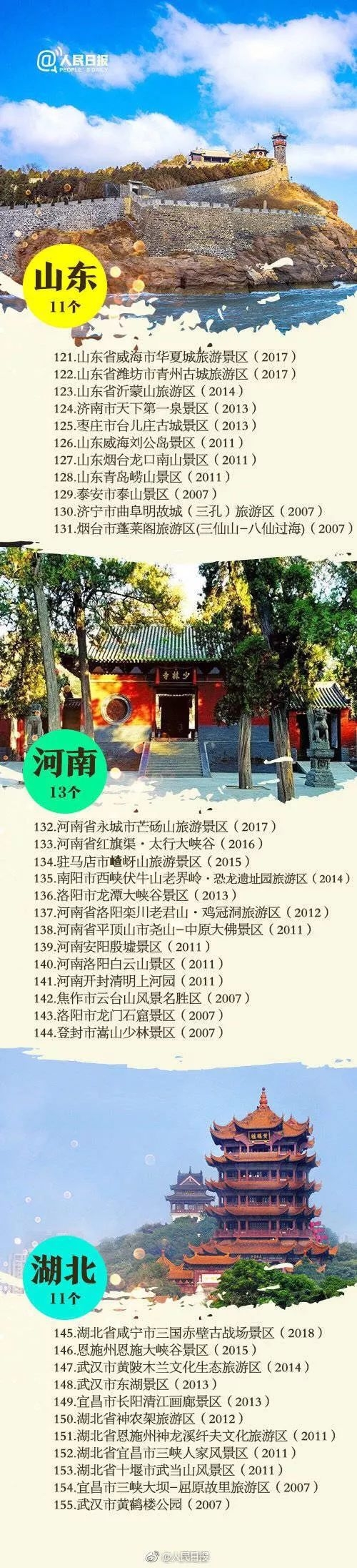 近日,国家发改委发出通知,要以“五一”、暑期、“十一”为重要节点,降低景区偏高门票价格,在2019年年内推进景区更大范围、更大力度的降价。258家5A级景区,你去过几个?又最想去哪里打卡?最新最全名单↓↓