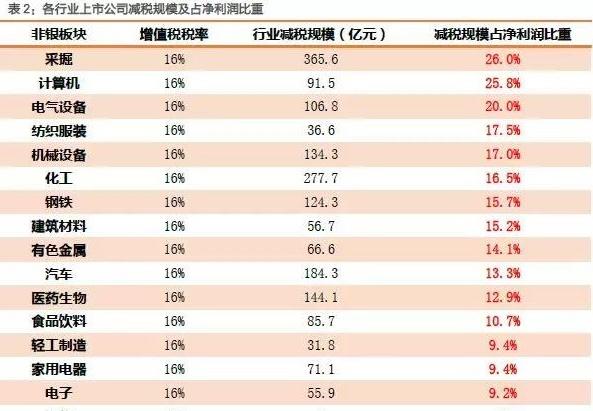 需要说明的是,由于增值税是价外税,增值税减税也是价外变动,与利润没有直接关系,增值税减税后各行业的实际利润增厚效果,还是要看行业对其上下游的议价能力。