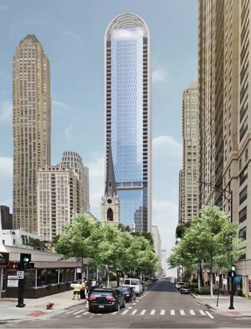 事情要从2017年说起。总部位于纽约的Symmetry房产开发集团在2017年揭晓了一份雄心勃勃的计划,他们要在芝加哥最有历史感的老街区,修一座高度725英尺(相当于254米)的60层豪华建筑。这个项目被命名为“北岸塔”。