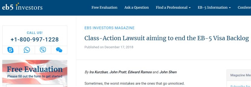 网站信息显示,一些美国律所甚至公开招募有过受害经历的EB-5投资人,准备对项目相关方以及美国联邦政府提起集体诉讼。