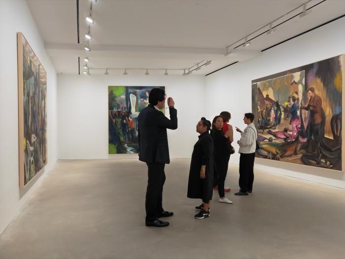占据5楼和6楼两层空间的卓纳画廊带来“尼奥·劳赫:宣传”展览,这也是这位德国艺术家在亚洲的首次个展。尼奥·劳赫被公认为当今最重要的画家之一,他以结合了具象与超现实抽象元素的绘画而著称。本次展览带来艺术家的12件画作,其中以长宽皆大于2.5米的大尺寸作品居多。