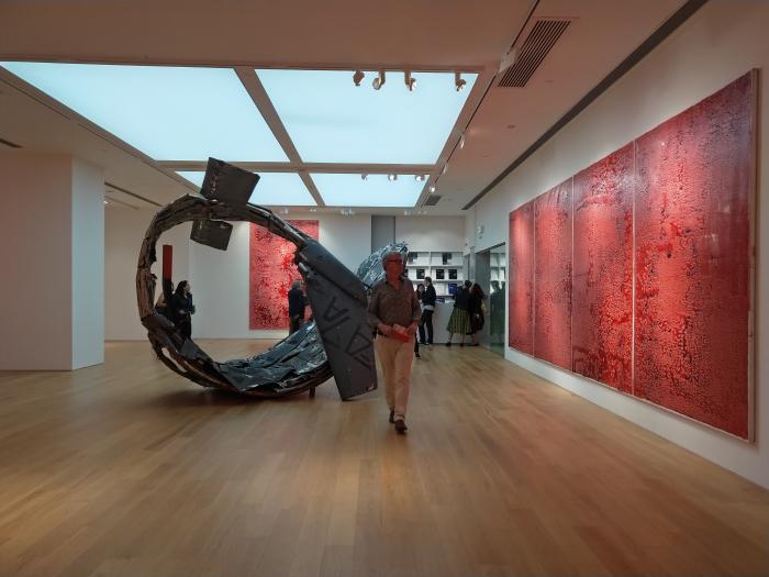 10楼的当代唐人艺术中心带来阿德尔·阿贝德赛梅的个展“解锁”,他的作品融入政治主题,是对当前各种世界乱局的回应。参观展览的过程如同一次进入艺术家崎岖世界的自省之旅。