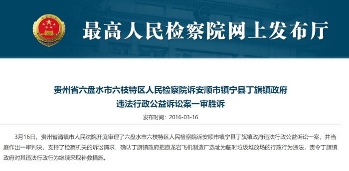 【案情回放】镇宁县丁旗镇政府将位于镇宁县与六枝特区交界处的5亩场地作为丁旗镇生活垃圾临时堆放场,造成较为严重的环境污染。2015年11月,六枝特区检察院向丁旗镇政府发出检察建议书,限期镇政府清理垃圾,恢复地块原状。丁旗镇政府在限期内未予答复,亦未履行职责。 2016年1月,六枝特区人民检察院提起行政公益诉讼。