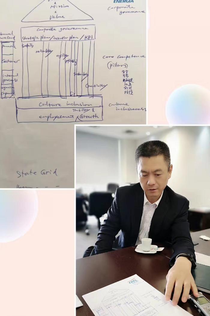文博董事长向我展示了他手绘的一张公司治理结构图。这张图包括公司治理提升,核心能力建设和企业文化融合。他介绍说:“按照国家电网公司对提升管理的要求,我们从框架搭建,模式优化和创新机制三个方面入手,着力提升公司核心能力,在安全、服务、敏捷、效益、创新、可持续等方面获得突破。”目前该机制处于完善阶段,我们也借鉴了现代企业的管理工具,比如平衡积分卡。平衡计分卡是一种绩效管理的工具,它将企业战略目标逐层分解转化为各种具体的相互平衡的绩效考核指标体系,从而为企业战略目标的完成建立起可靠的执行基础。”对CPFL公司的未来,文博董事长充满信心,他期待通过实践,把国家电网的先进技术和优秀管理引入巴西,为巴西电力行业和社会经济发展做出积极贡献。
