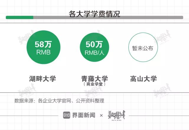 据湖畔大学和青藤大学官网,湖畔大学三年学费为58万人民币,包含教学费用、相关资料费用,但不含路途费、住宿费、游学费,且入学前缴纳完成。青藤大学-商业学堂的学费标准为50万RMB/人。