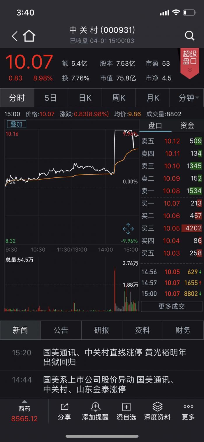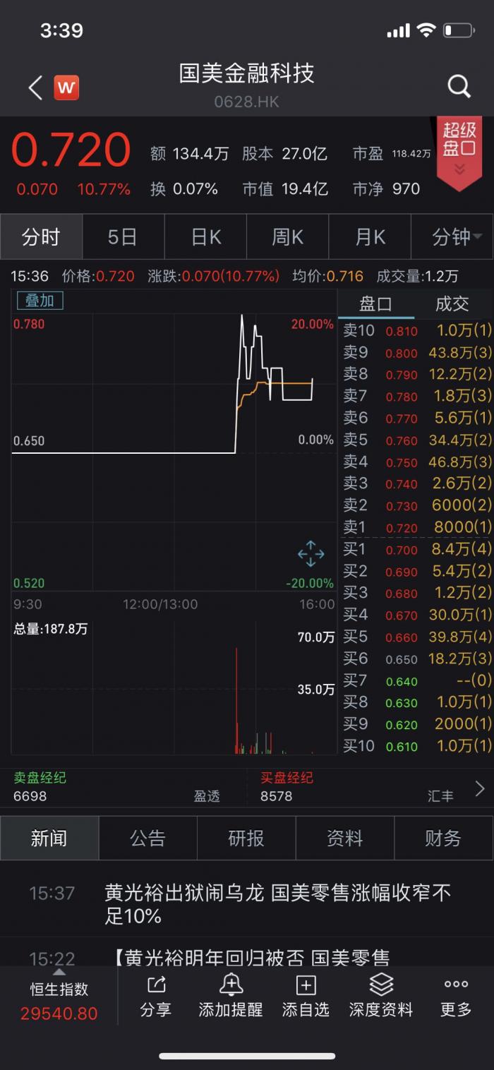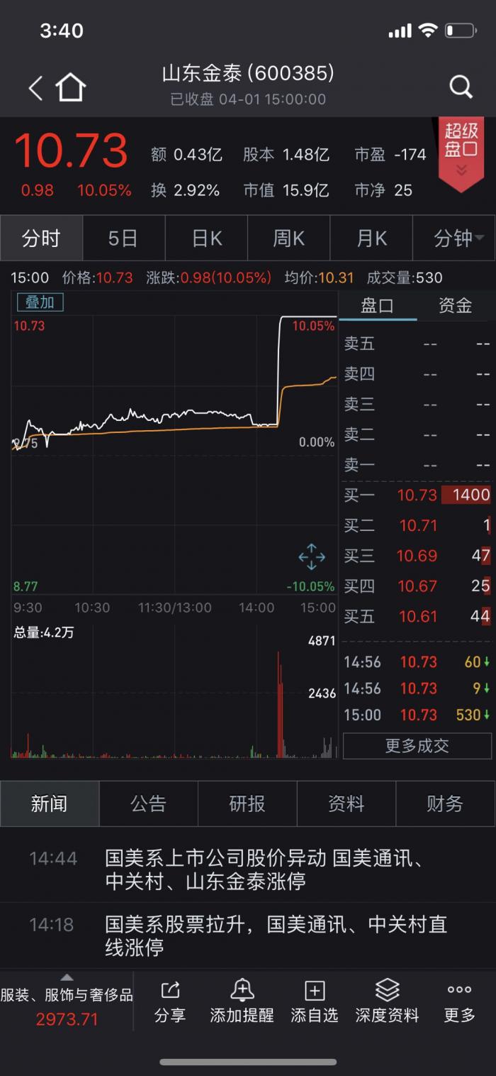 山东金泰(600385.SH)由黄光裕哥哥黄俊钦实际控制,当日该股股价较为坚挺,以涨停收盘,报10.73元。