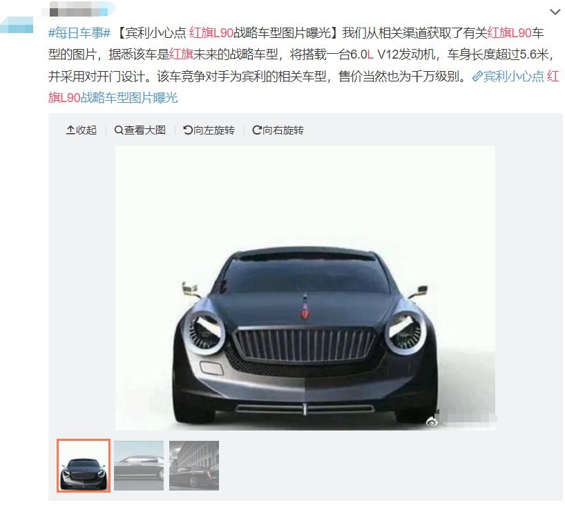 由此来看,红旗L90和L9应该一样,不会大批量生产,而是走定制路线。每日经济新闻(微信号:nbdnews)记者发现,目前一汽集团已经有高管在朋友圈高调宣传这款车型,或许这款售价千万元的车型将在不久后面世。