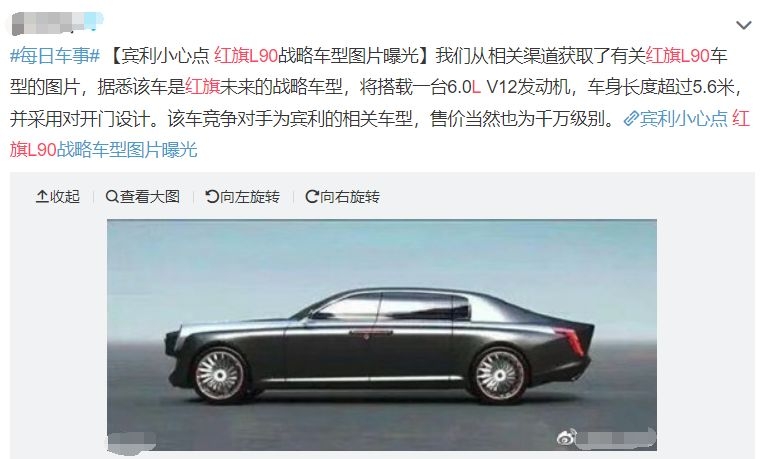 继售价500万元起的“最贵自主车”L5后,红旗又要推出一款售价预估在千万元级别的新车型L90。网友惊呼:“这是要刷新我对汽车的认知吗?”